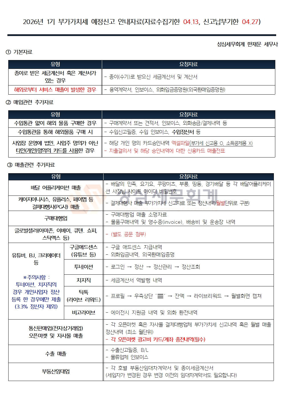 [안내] 26년 1기 부가가치세 예정신고 안내문